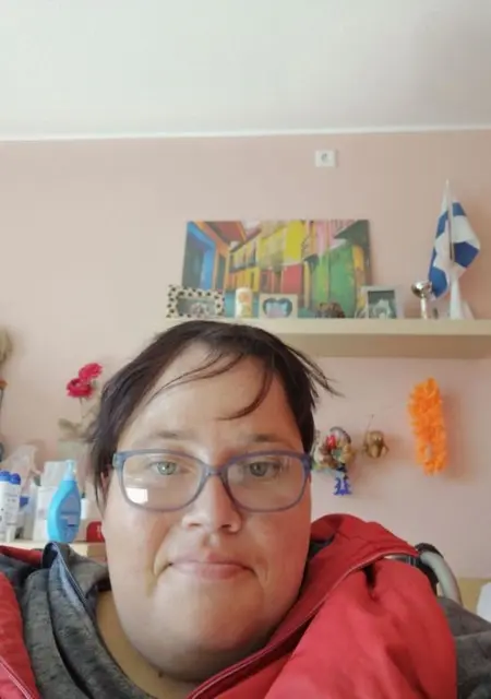 Ich sitze im Rollstuhl