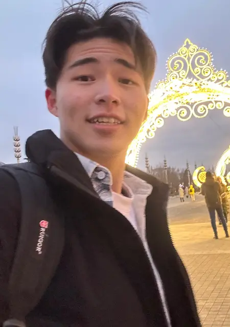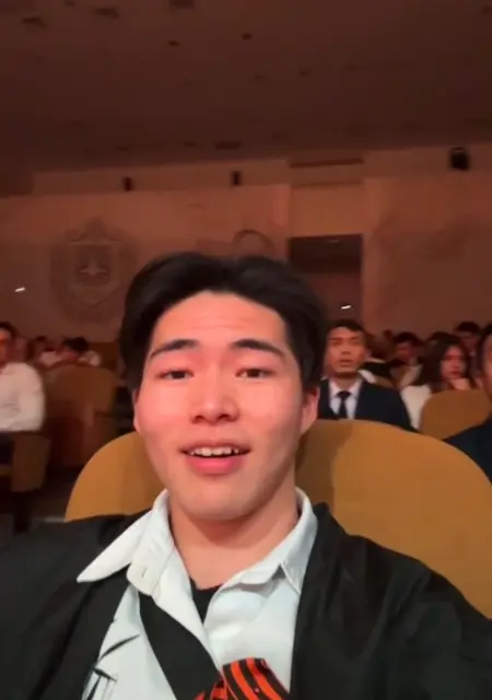 Счастливый и юмористический красивый китайский иностранный студент, обучающийся на северо-востоке Москвы